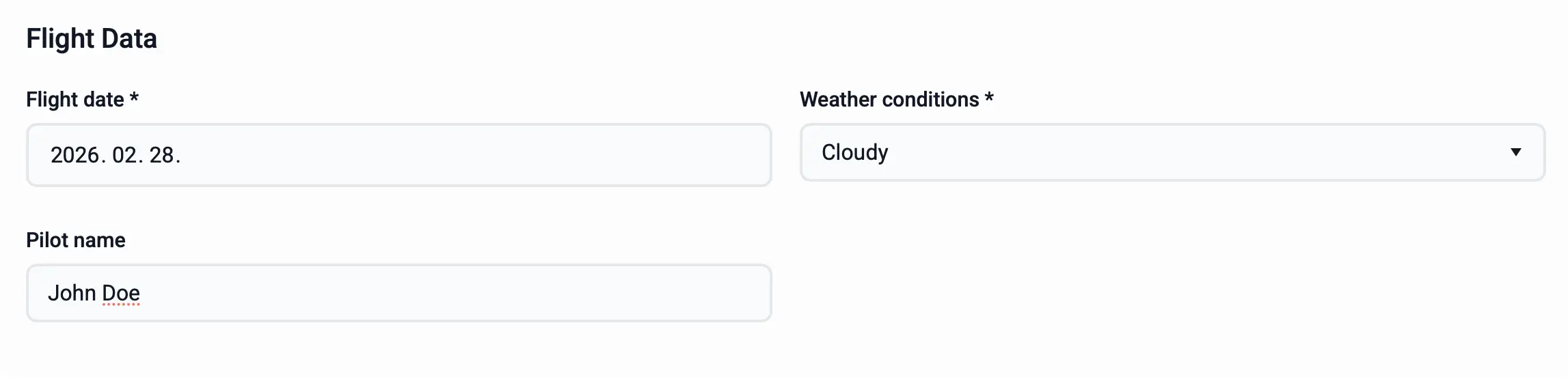 Ide tartozik a repülés dátuma, a pilóta neve, valamint az adott napon uralkodó időjárási körülmények.