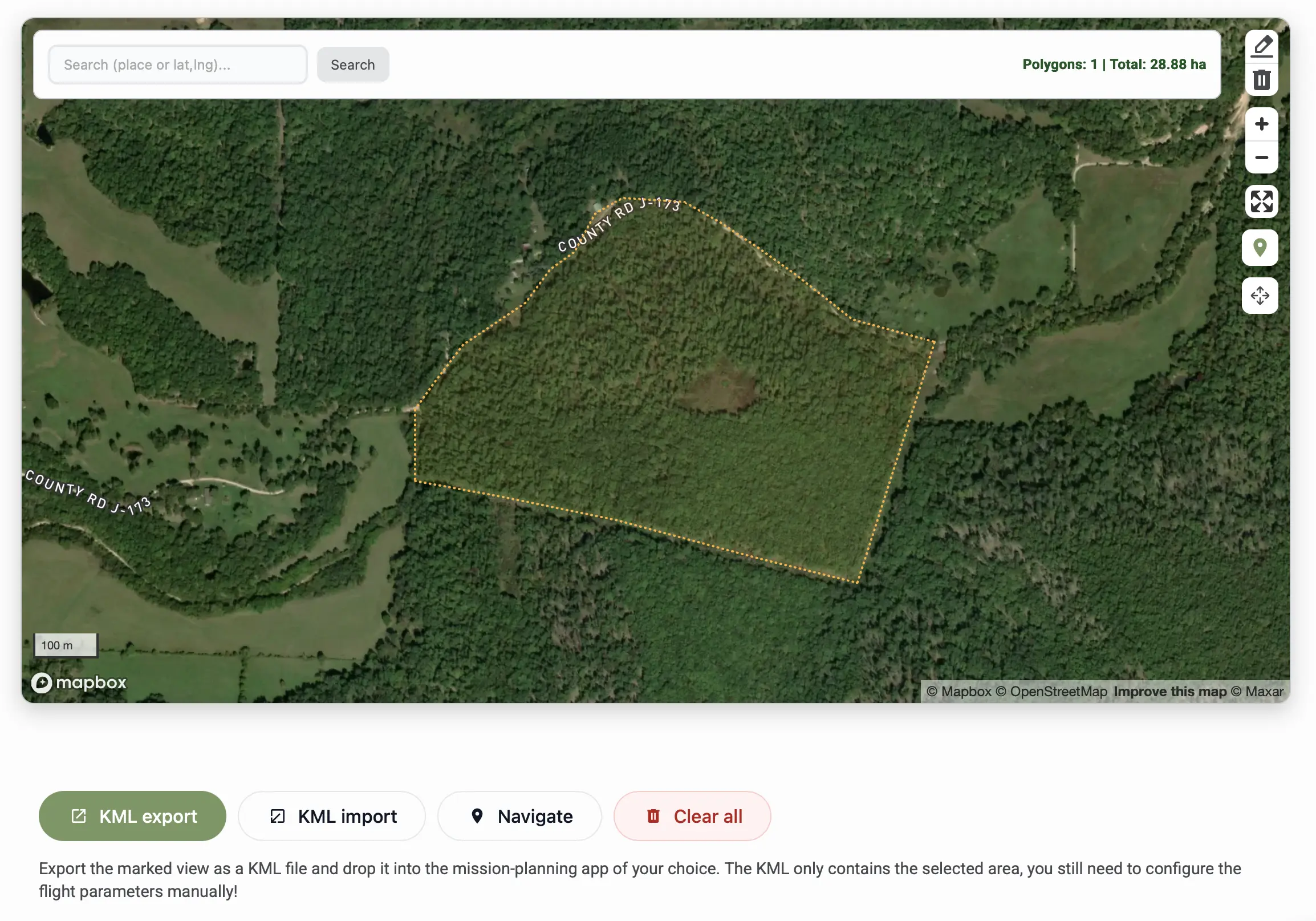 ✅ Előny: Ha már rendelkezel pontos terület-körbehatárolással, a KML import segítségével másodpercek alatt beállíthatod a felmérendő területet.